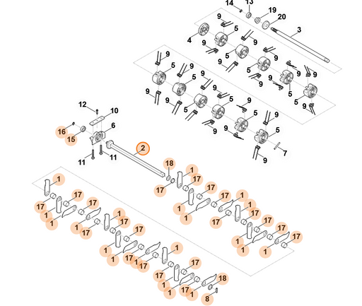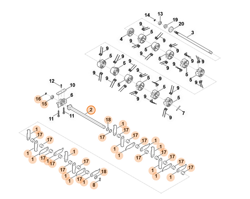 STIHLAlle Preise inkl. 19 % MwSt. und zzgl. Versandkosten Ersatzmesserwelle für den Vertikutierer RL 540 Komplettsatz: Enthält Element(e):1-13
